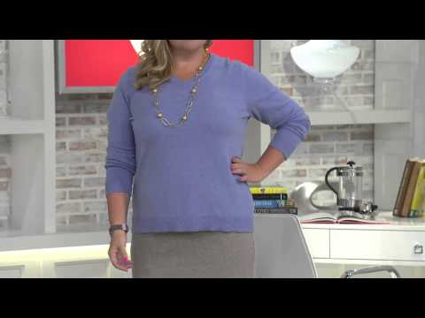Click to Order Susan Graver Cozy Knit Long Sleeve V-Neck Sweater with Pockets with Jayne Brown